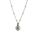 what's your initial? alphabet pendants made of .925 sterling silver. small round disc pendant featuring an inscribed block letter. sterling silver chain is 16 inch length plus a 2 inch extender, 18 inch total length.