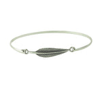 Unit price / per- Dainty Feather Bangle, Made of .925 sterling silver. Intricate detail, feather features a darkened finish. Thin design , perfect for stacking. 2mm thick. Feathers are approximately 1 inch. Slight maleable for adjustment.