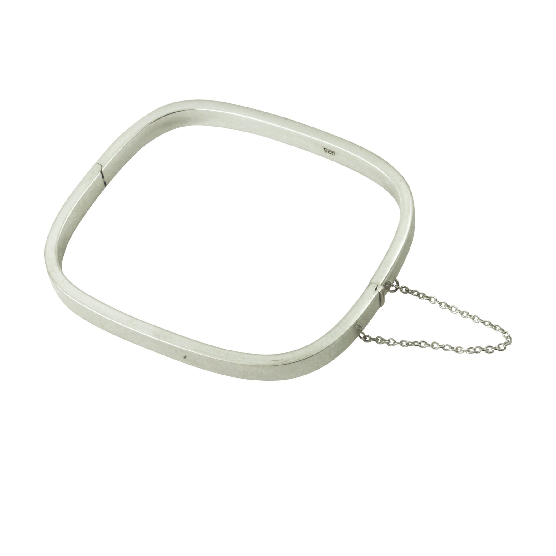 Sterling Silver Square Bangle Bracelet with Chain accent