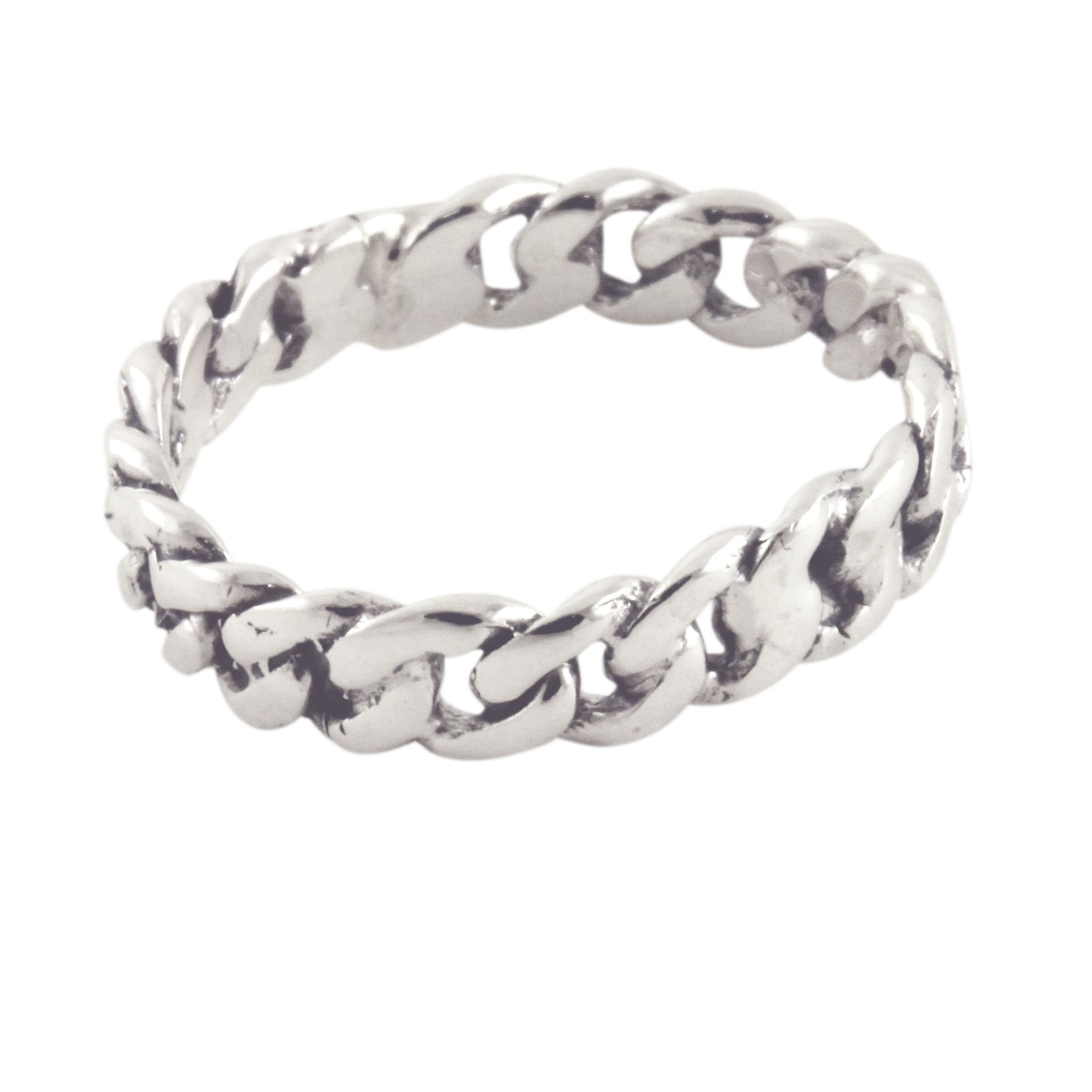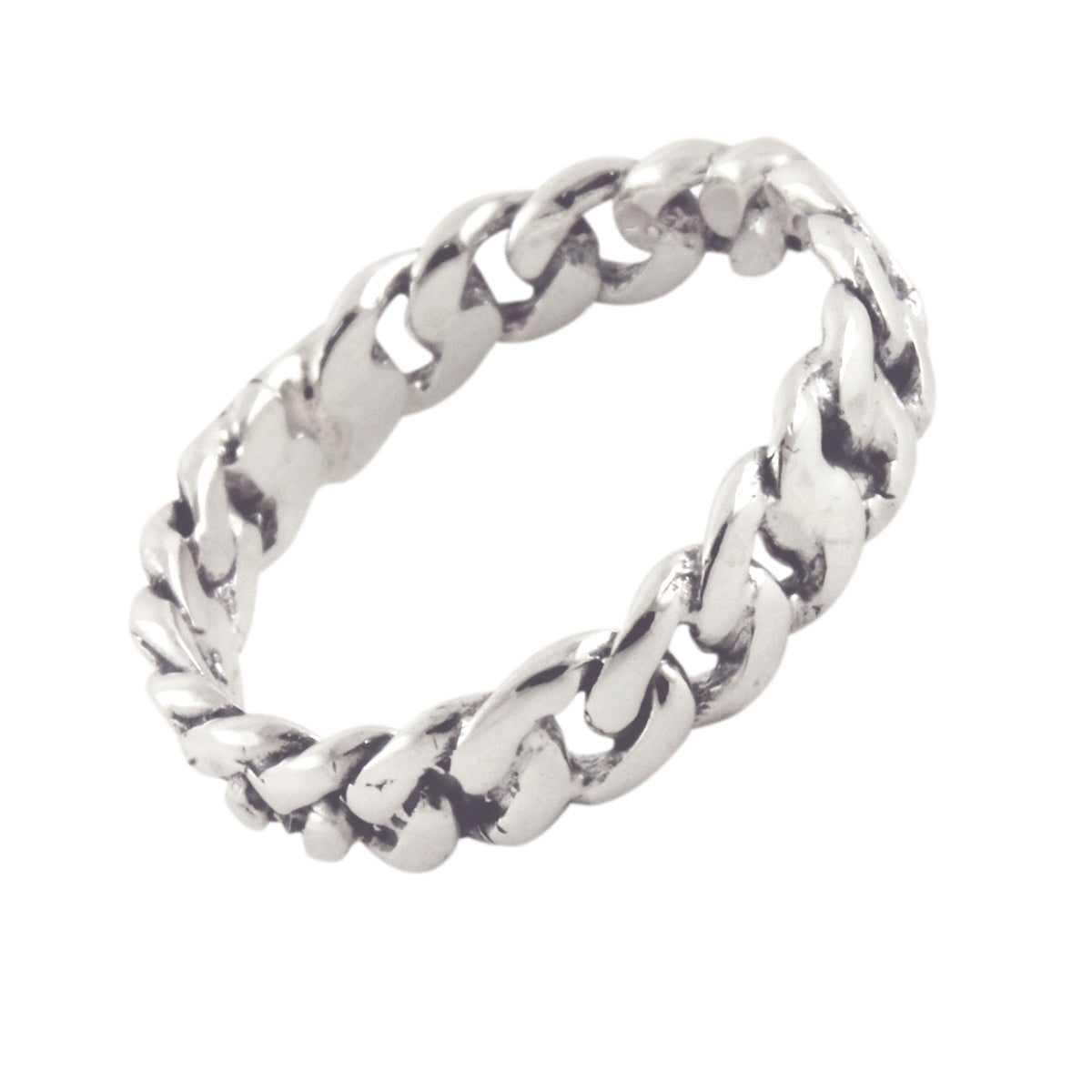 Sterling Chain ring Made of .925 sterling. Unisex. Chain style design. Cuban Style Chain. Dark accents for bold finish.