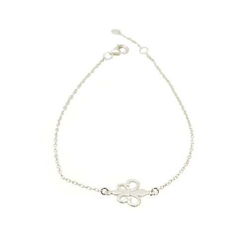 Simple and beautiful sterling silver Fleur de Lis bracelet. Made of .925 sterling silver. Features a classic sterling silver Fleur de Lis symbol at center. Lobster claw clasp for a secure fit. Looks great on it's own or paired with a Fleur de Lis necklace.