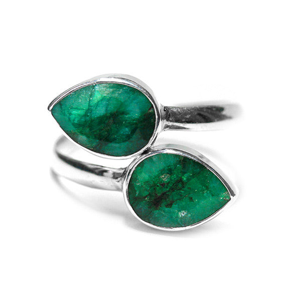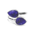 a classic yet modern bypass ring. Made of 925 sterling silver. Polished finish. Small teardrops dyed blue stones sit on the edge at either end of the ring. Transform your finger with one, two, three or more.