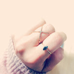 Unit price / perstacking simulated turquoise ring, featuring a robin blue marquise cut stone ring. Made of .925 sterling silver and dipped in yellow gold. Polished finish. Features a simulated turquoise center in a marquise shape. Looks great with other gold stacking rings.
