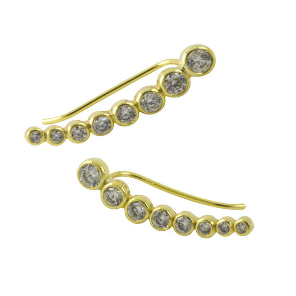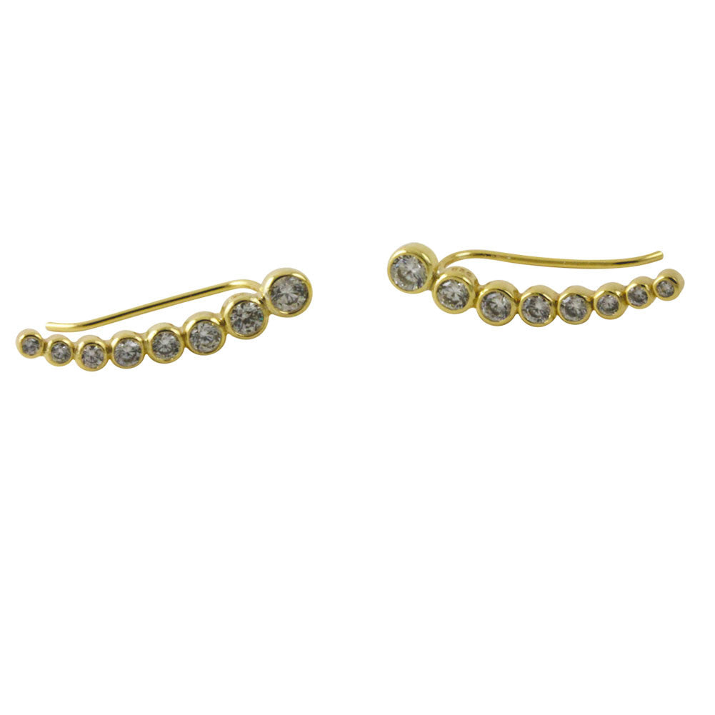 Gold-Dipped CZ Ear Pin Climber Earring Studs