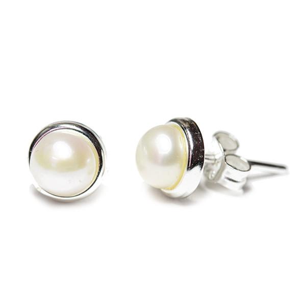 "Frosty" Sterling Silver Freshwater Pearl Stud Earrings 8mm