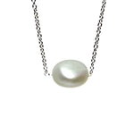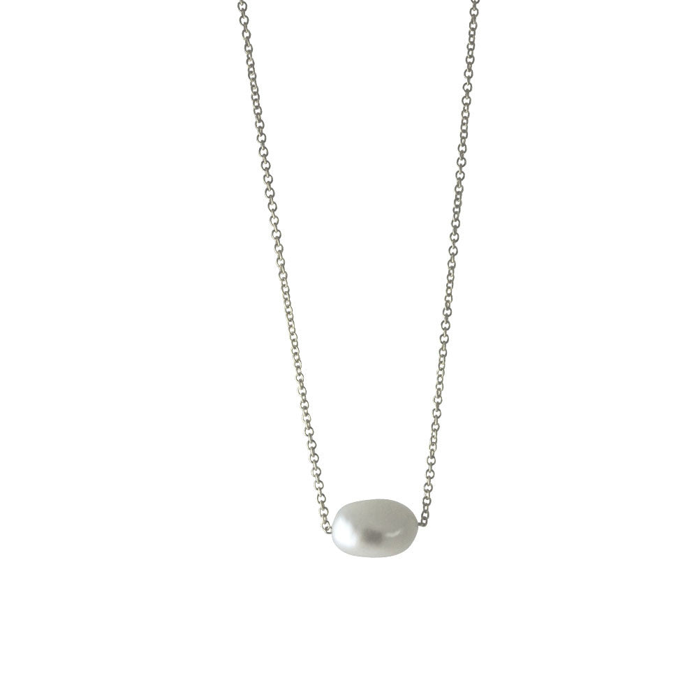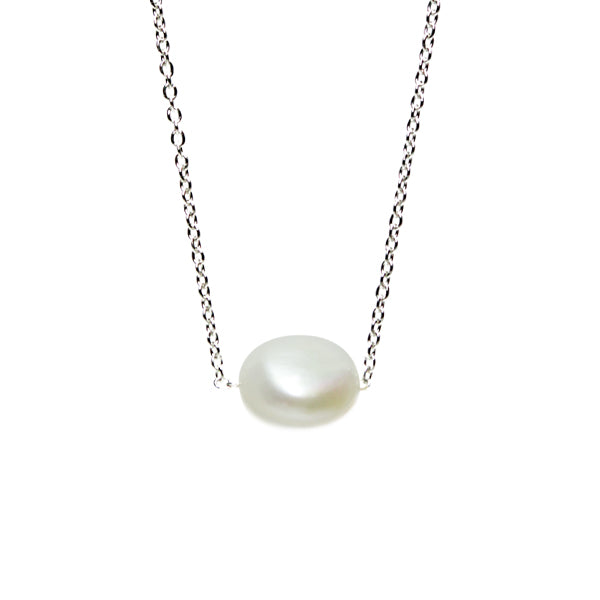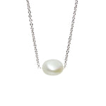 Natural freshwater "baroque" single pearl necklace. Made of .925 sterling silver. Featuring a single natural "baroque" pearl at center. Delicate rolo chain with spring ring clasp. Complementing .925 sterling silver "baroque" single pearl bracelet available.