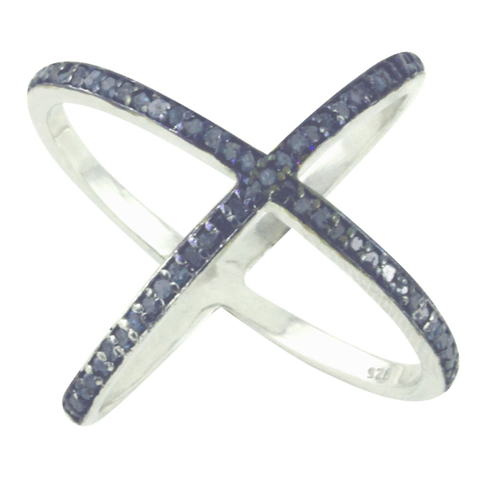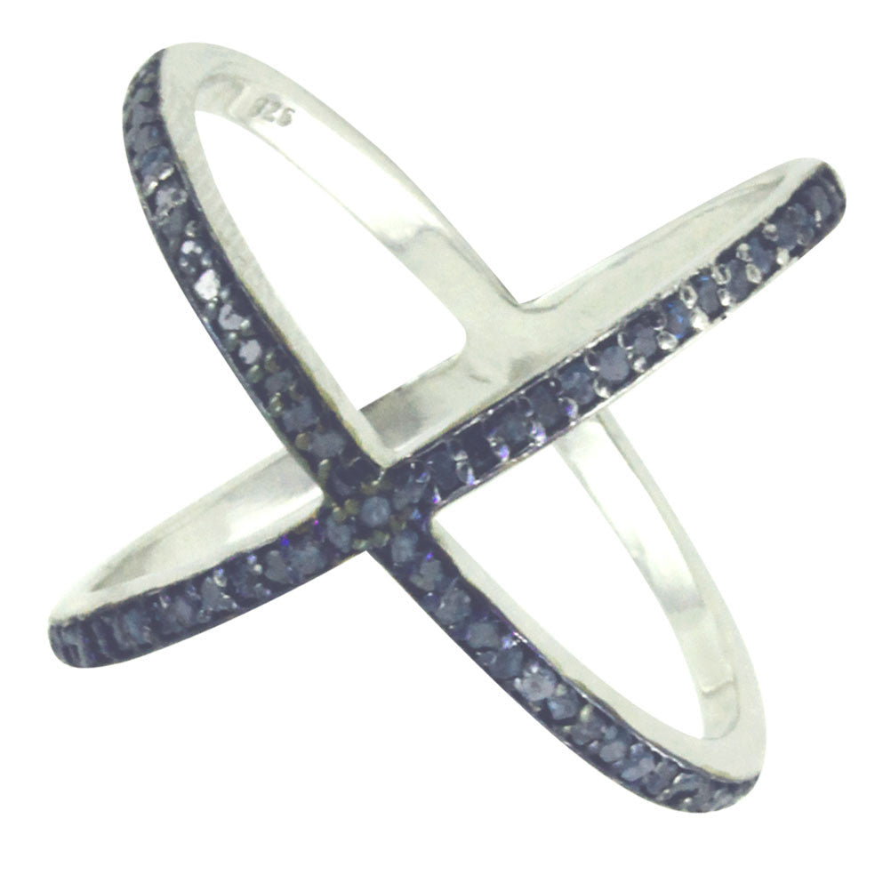 KrissKross Sterling Silver Blue Diamond X Ring