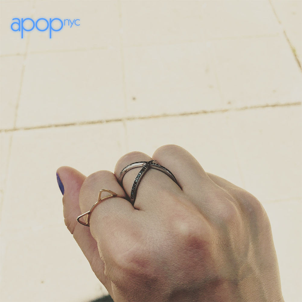 Unit price / perStunning! Edgy silver Diamond X band ring is made of solid .925 sterling silver. Featuring an "X" design with dazzling blue diamonds. A black finish setting to highlight blue color diamonds. great for pointer ring, knuckle ring, middle ring. Cocktail ring or everyday wear. polished finish. Ring Sizing Guide
