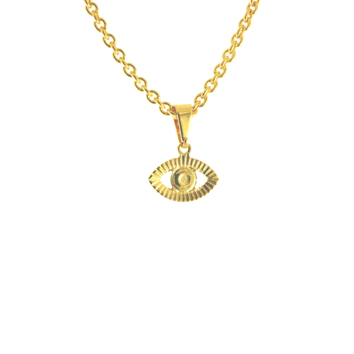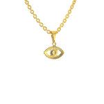 Protect yourself! Stylish protection with this simple yet meaningful gold evil eye disc pendant necklace. Made of gold-filled. Featuring an open eye shape with and etched eye at center. Choose your chain metal style, for a two-tone finish or gold plated silver for a striking shine!