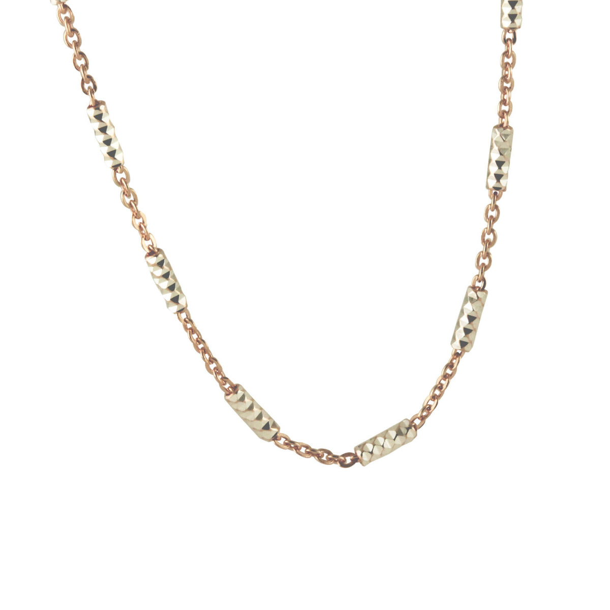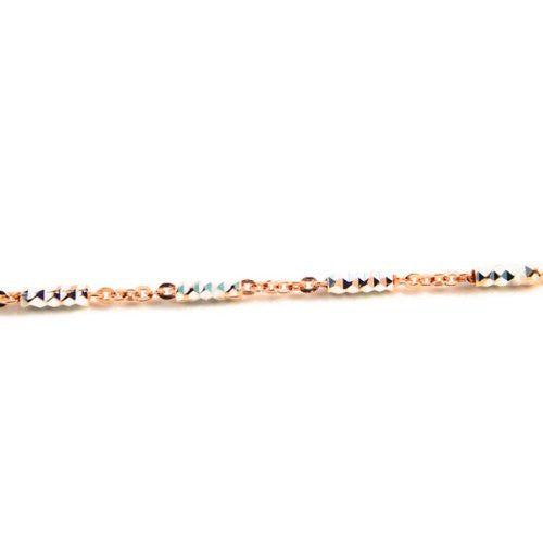 Introducing this chic rose gold chain to Apop's Rosy Collection. Made of .925 sterling silver. Plated in Rose Gold. Featuring a two tone design, faceted silver Bar style beads embellished by rose gold round chain links, it's unique and gorgeous. Great for layering Picture is magnified for detail.