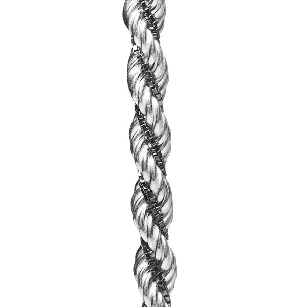 Two-Chains! An ultra cool rope chain necklace with an eye-catching twisted design. Rope chain made of .925 sterling silver. Box chain detail made of beautiful black rhodium plated silver. Twist chain sparkles at every angle. We recommend layering with simple sterling silver chain necklaces at alternating lengths. Italy.