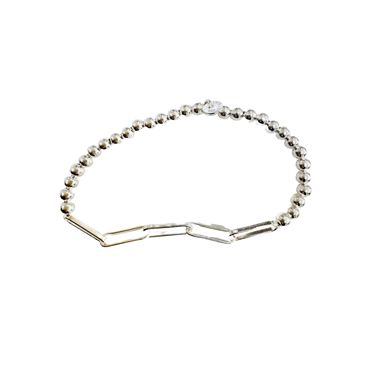 Chic beaded paperclip bracelet. Made of .925 sterling. Featuring round beads and paper clip chain accent Beautiful alone, gorgeous stacked. Beads are approximately 5mm. Italy.