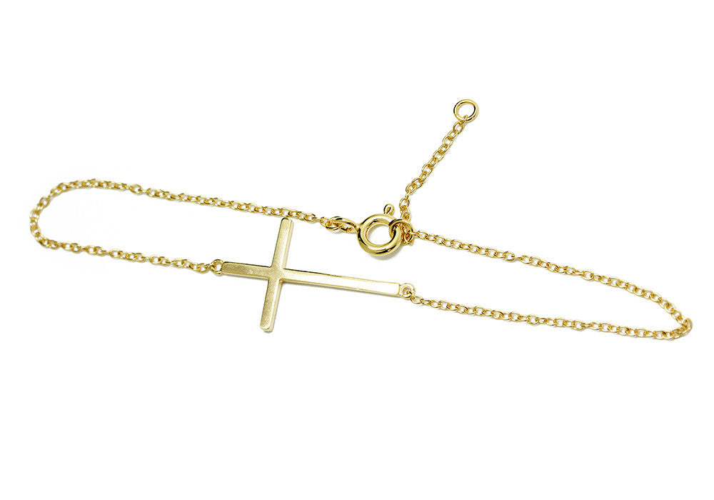 Gold-Dipped Horizontal Cross Bracelet 7 inch