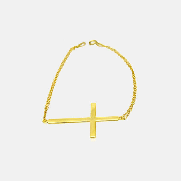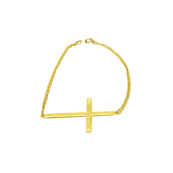 Gold-Dipped Sideways Cross Bracelet 7 inch Large Cross