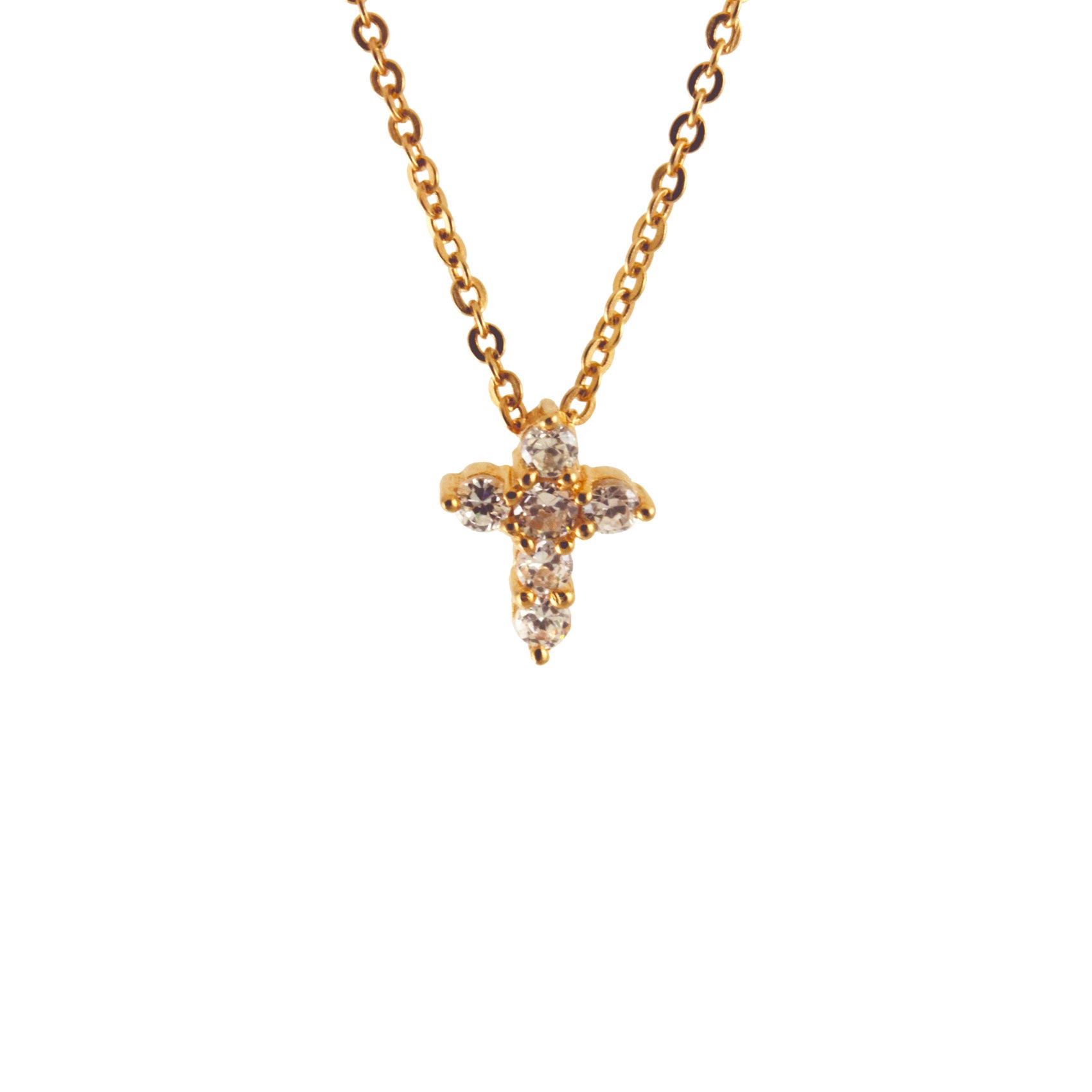 Sterling Silver CZ Mini Cross Necklace