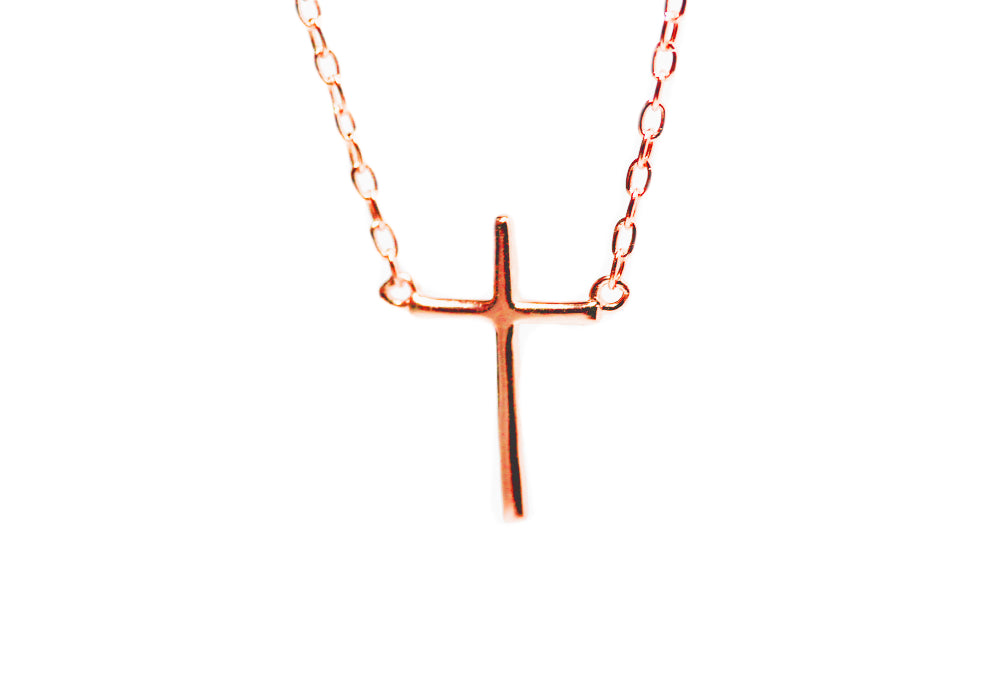 mini cross pendant necklace, Made of .925 sterling silver and dipped in gold. Chain features a mini cross charm. Cross Charm: .50 inch height x .40 inch width
