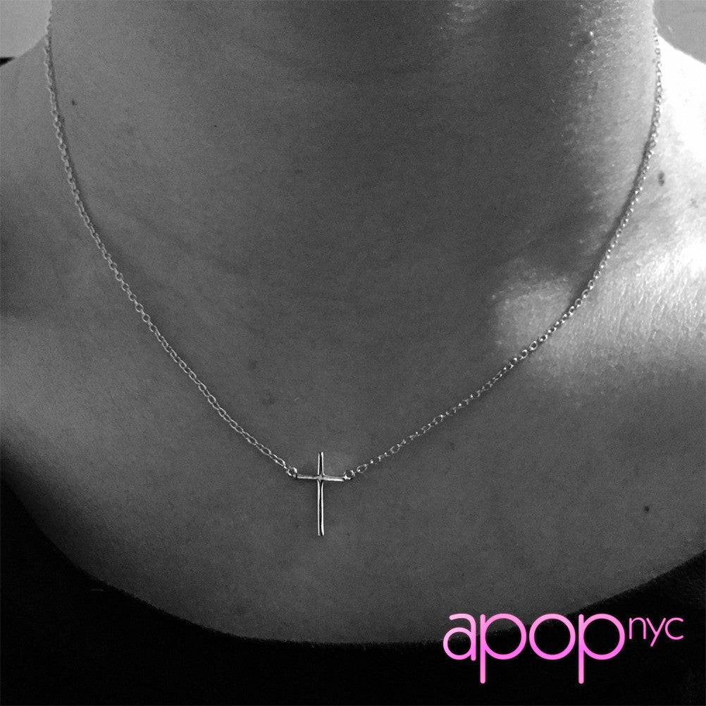 "Savior" Mini Cross Pendant Necklace 16 inch