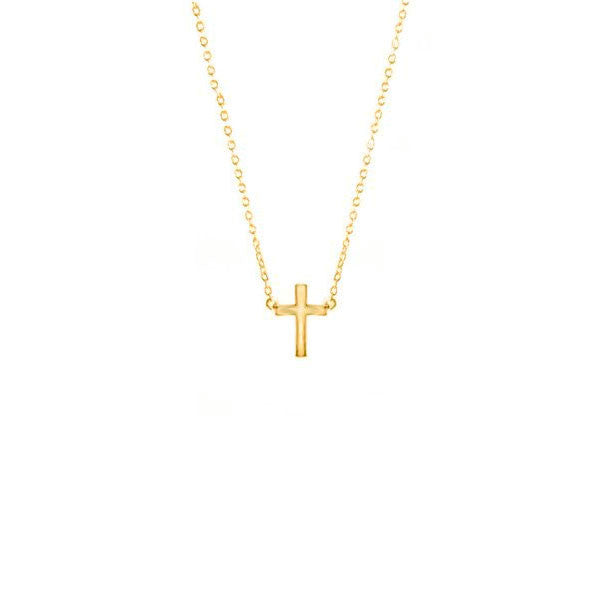 Made of .925 sterling silver and dipped in gold. Chain features a mini cross charm. Cross Charm: .50 inch height x .40 inch width