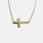 A hip sideways cross necklace that will cover all of your everyday style needs. Made of stainless steel. Polished finish. Sturdy chain. Features a thick horizontal cross charm at center of necklace. Perfect length for layering. We recommend wearing with a mini sideways cross in silver for a unique look. Unisex