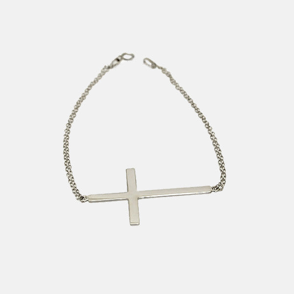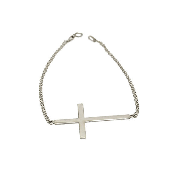 Sterling Silver Horizontal Cross Bracelet 7 inch Large Cross