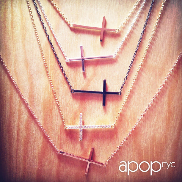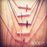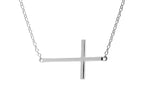 Made of .925 sterling silver. Silver dainty link chain features a thin sideways cross charm at center. Close to collar bone. Simple sideways cross charm; .90 inch length x .47 inch height