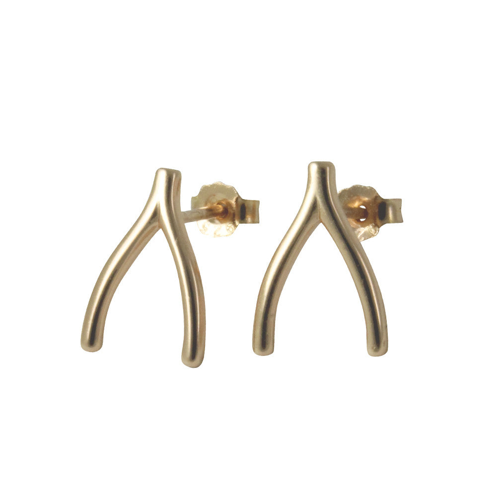 Gold wishbone earrings, made of .925 sterling silver. Plated in 14k Gold. Stud earrings. Delicate wishbone design.