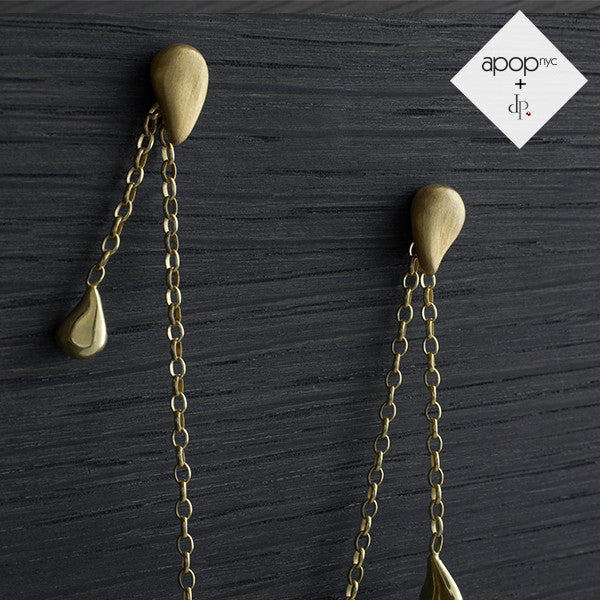 Daphne P. Matte Gold Vermeil Teardrop Long Drop Chain Earrings