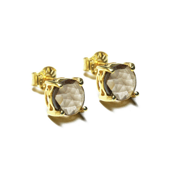 Unit price / perFinally, the perfect pair of everyday gemstone stud earrings! Gorgeous and glimmering smoky topaz stones set in 4-prong setting. Round smoky topaz creates an air of elegance.4-prong setting made of .925 sterling silver, dipped in gold. Polished finish, post earrings. Pair with a long gemstone necklace in gold for an ultra fabulous and complementing look.