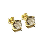 Finally, the perfect pair of everyday gemstone stud earrings! Gorgeous and glimmering smoky topaz stones set in 4-prong setting. Round smoky topaz creates an air of elegance.4-prong setting made of .925 sterling silver, dipped in gold. Polished finish, post earrings. Pair with a long gemstone necklace in gold for an ultra fabulous and complementing look.
