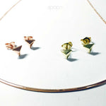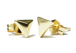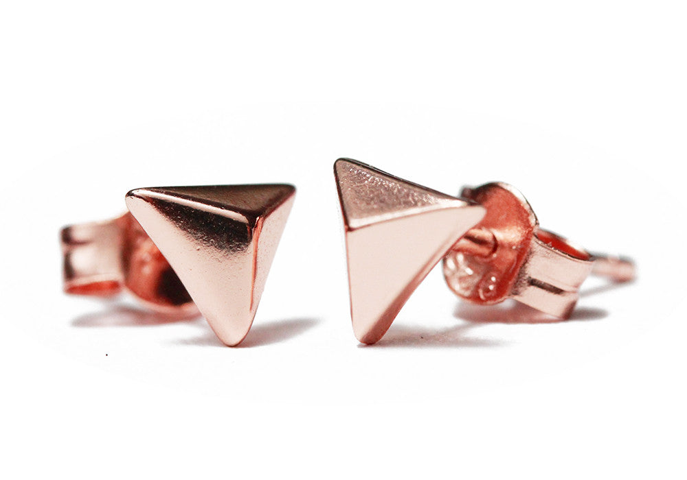 Unit price / perSimple and chic, these gold tiny pyramid stud earrings are made of .925 sterling silver, dipped in rose gold. Studs are crafted with an edgy structured three dimensional design. Polished Finish. Post earrings. We recommend keeping item away from moisture for a longer lasting finish.