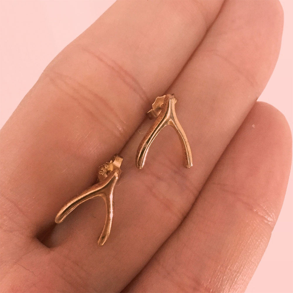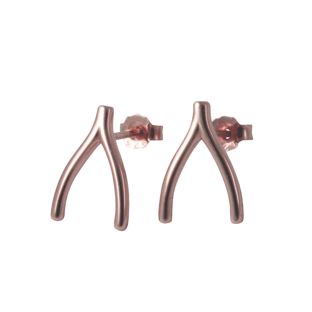rose gold wishbone earrings , made of .925 sterling silver. Plated in Rose Gold. Stud earrings. dainty wishbone design.