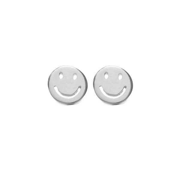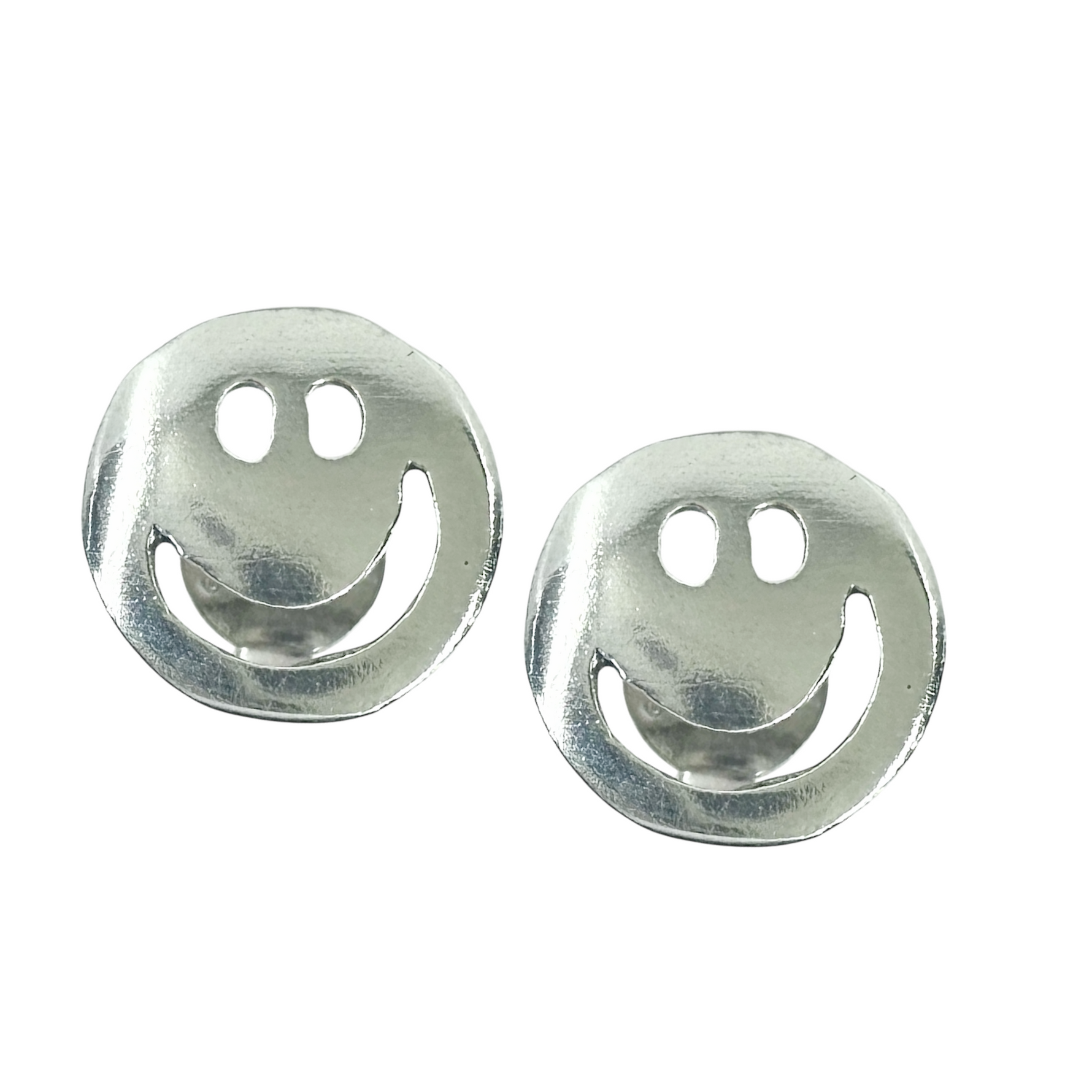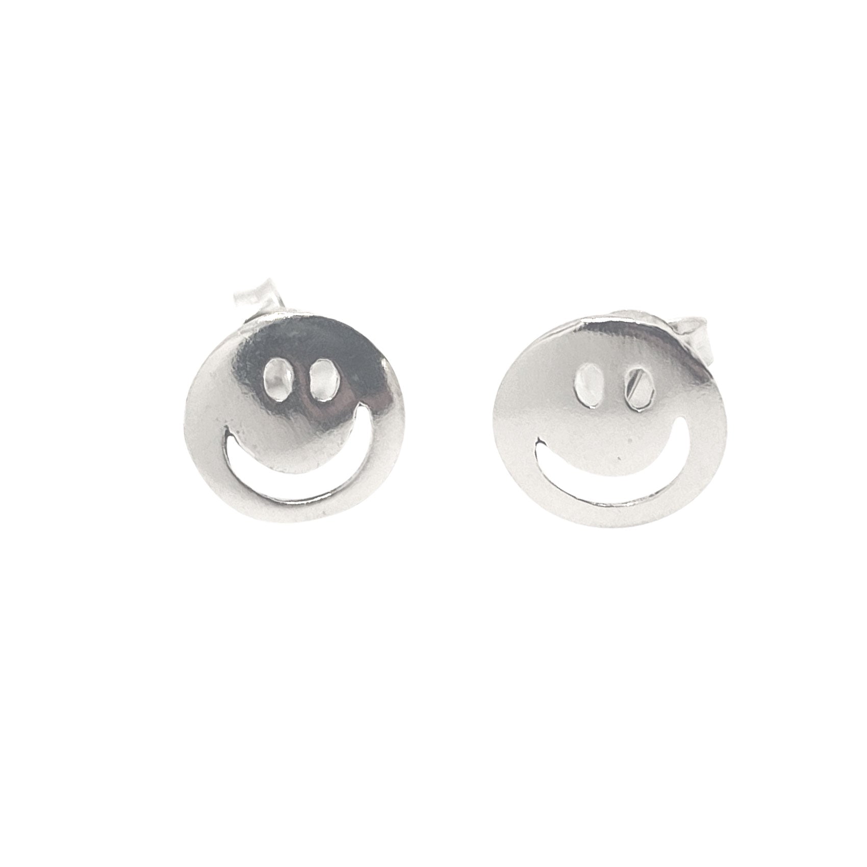 silver happy face earrings, made of .925 sterling silver. Stud earrings. Cute Happy Smile design.