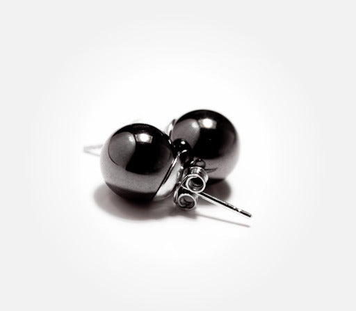 Dark Gray studs, Made of sterling silver post. Hematite stone. Dark grey/gunmetal hue. Photo is magnified.