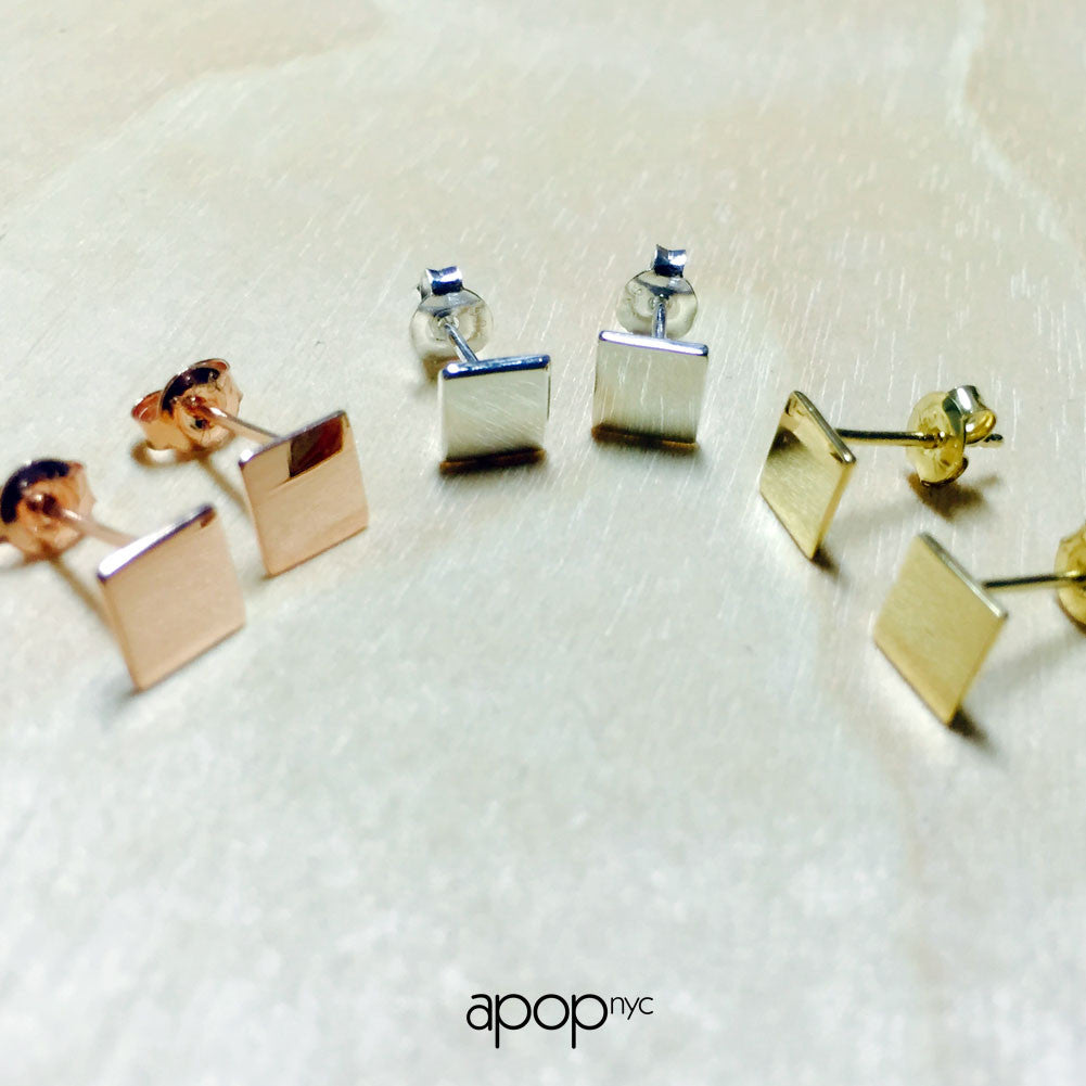 mini plain square studs, Made of solid 925 sterling Silver. geometric square shape. Stud earrings. Great for small ear lobes or young ladies! Rose/Gold Plated available, choose your favorite!