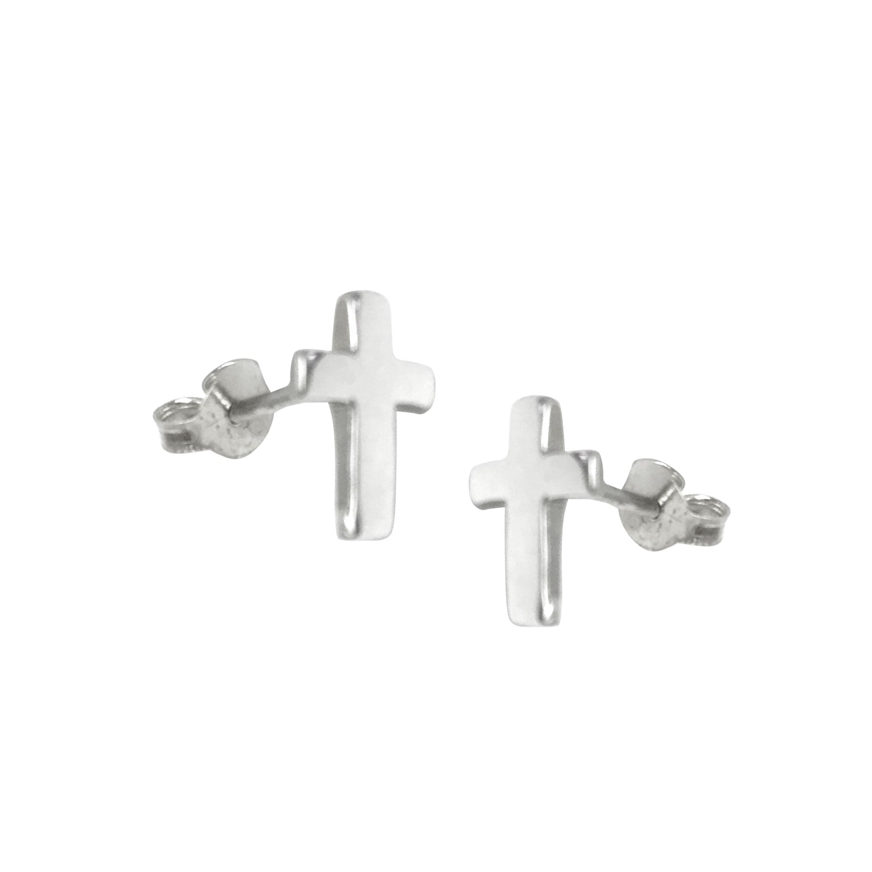 Sterling Silver Plain Cross Stud Earrings