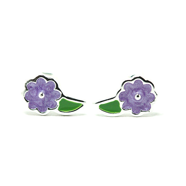 purple flower stud earrings Made of Sterling Silver featuring colorful enamel accent. cute for girls. Stud earrings.