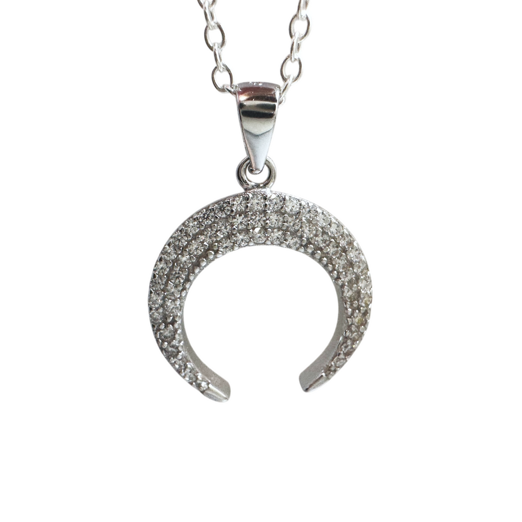 Sterling Silver CZ Horn Pendant Necklace