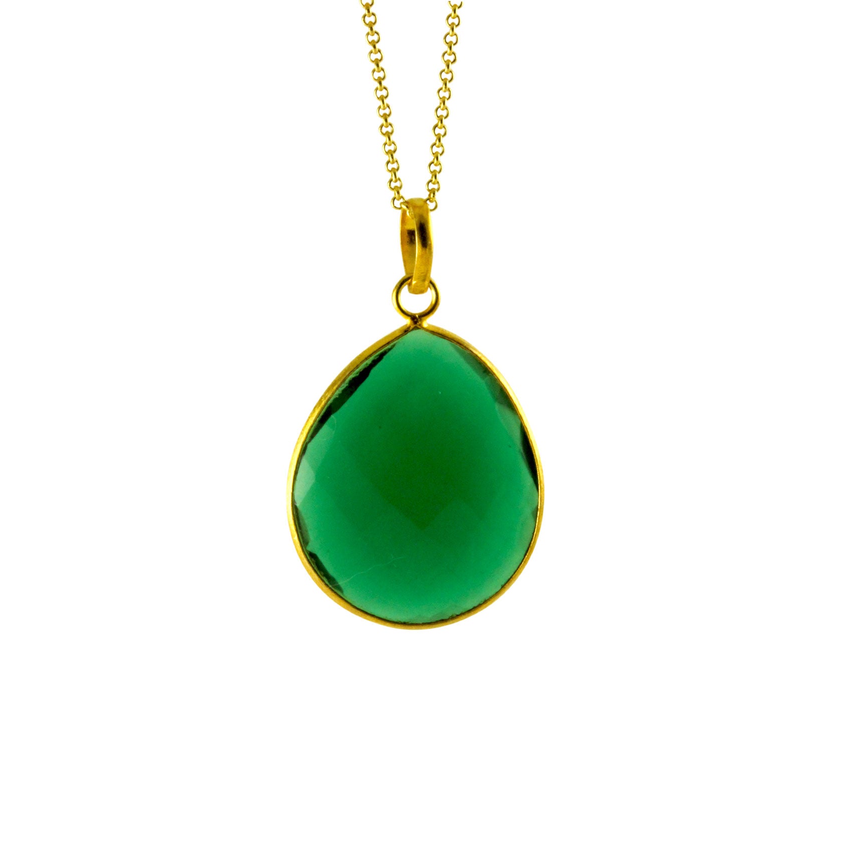 Green Envy! Green stone pendant, mage of green quartz stone pendant with .925 sterling setting, plated in gold. Chain is made of .925 sterling silver, plated in gold. Featuring a teardrop bezel set green quartz at center. Choose your length. Stone necklace with superb layering possibilities.