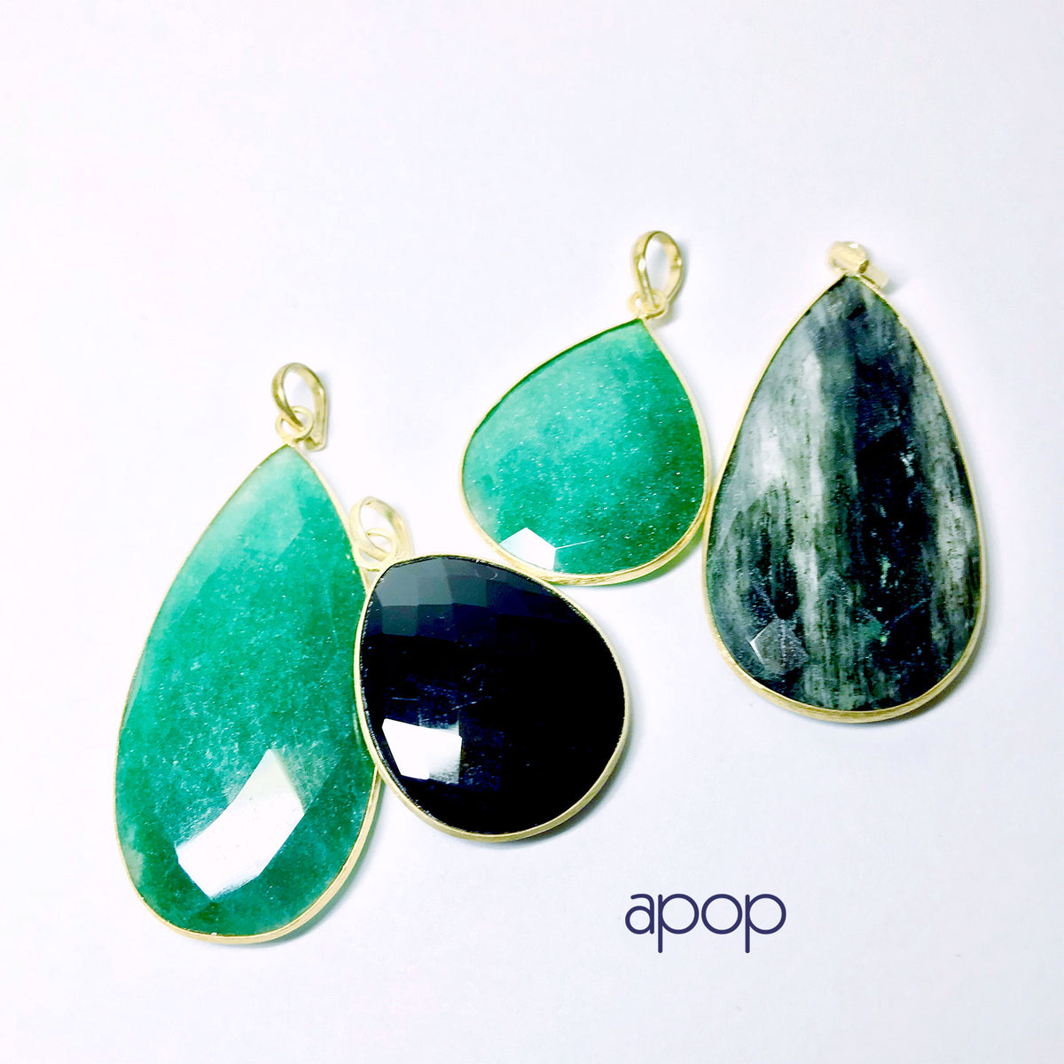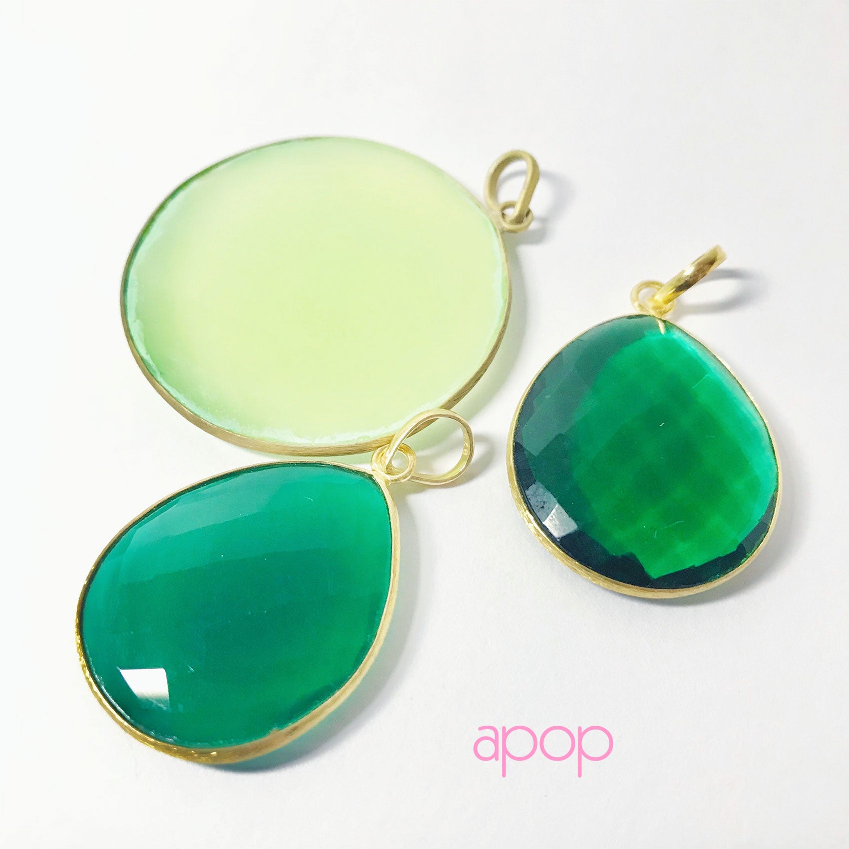 Unit price / perGreen Envy! Green stone pendant, mage of green quartz stone pendant with .925 sterling setting, plated in gold. Chain is made of .925 sterling silver, plated in gold. Featuring a teardrop bezel set green quartz at center. Choose your length. Stone necklace with superb layering possibilities.